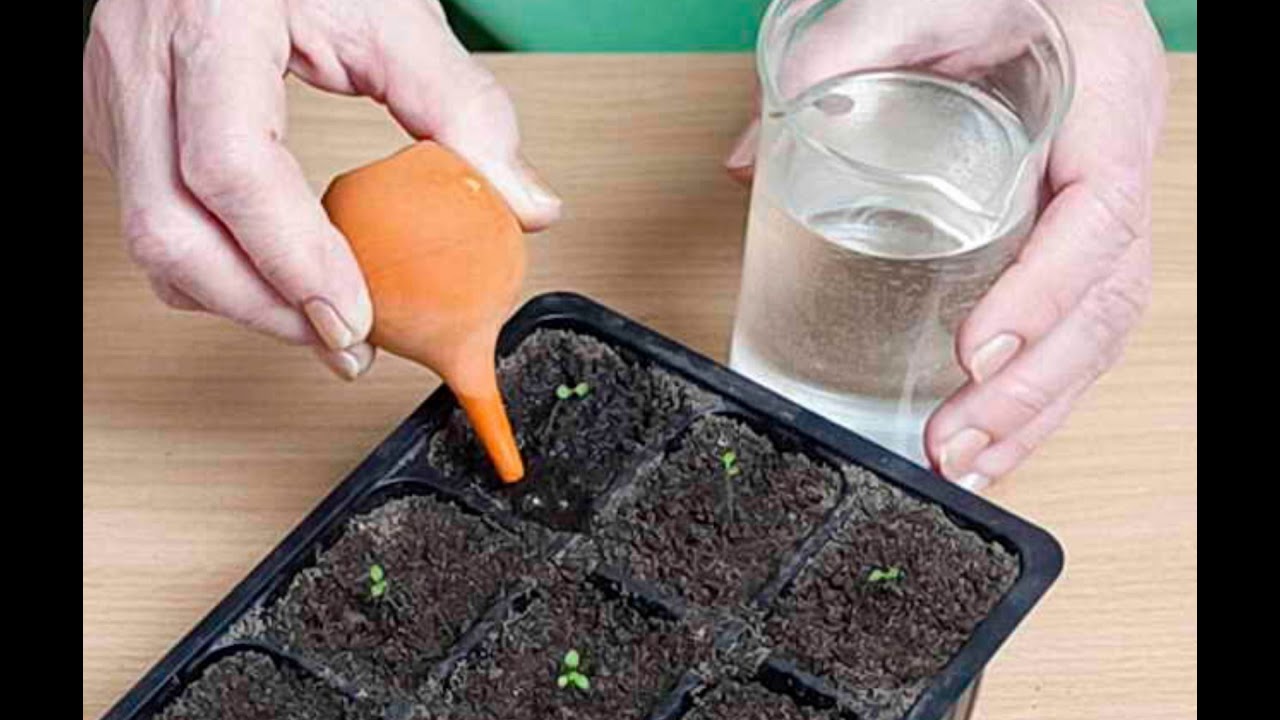 4. Грунт увлажняют через поддон либо орошают поверхность при помощи пульверизатора. Не следует поливать землю из лейки: это приведет к размыванию семян и их излишнему заглублению.