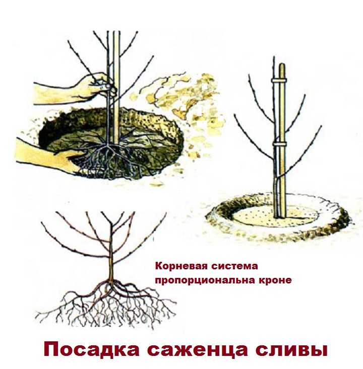 Корневая шейка сливы ни в коем случае не должна оказаться ни в земле, ни ниже её по уровню. Любое углубление почвы — это лунка для застоя воды и верная дорога к выпреванию сливы.