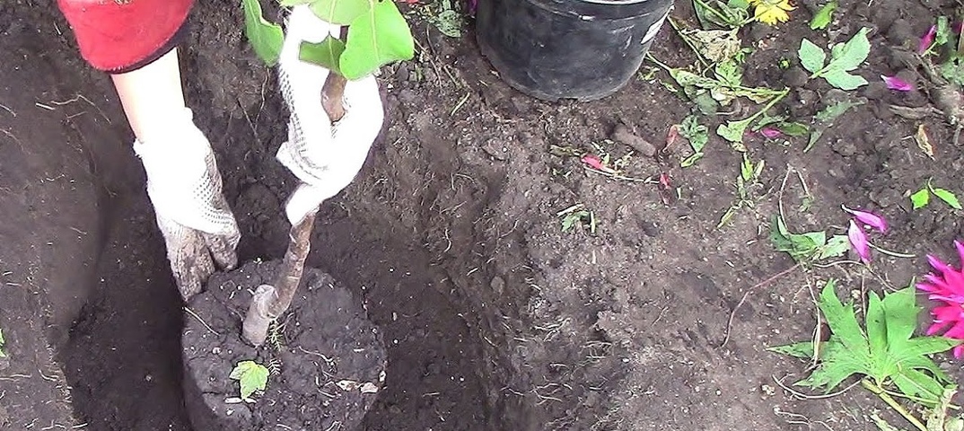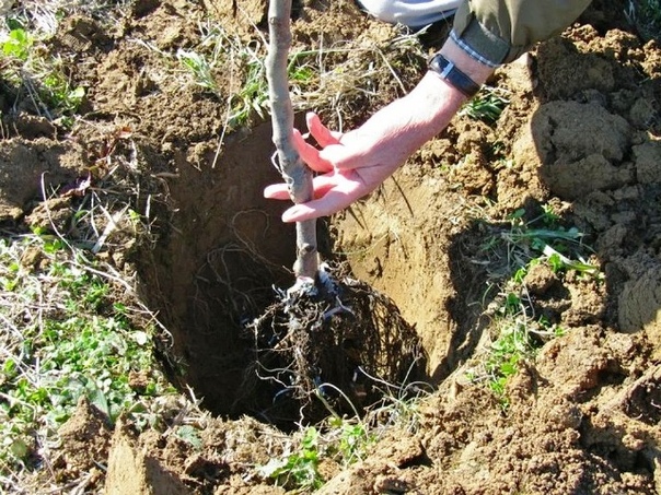 - Саженцы возрастом два-три года желательно высаживать осенью. Таким образом «экономиться» год до созревания первого урожая, а при обеспечении надежного укрытия и соблюдении правильного алгоритма посадки деревце хорошо перезимует. Для Подмосковья эти сроки составляют период с конца сентября до конца октября.