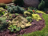 - Крупные растения сажайте рядом с большими камнями, маленькие – рядом с маленькими. Избегайте близкого размещения растений на холме!