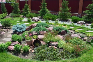 Альпийская горка — хороший вариант оформления придомовой территории в частном секторе.