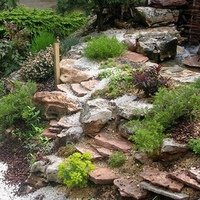 Камни можно брать абсолютно любые, но идеально подойдет для таких целей дикий камень, гранит (бесформенными кусками) или песчаник (часто можно найти на берегу моря). Если есть возможность найти гальку, цветной щебень и прочие им подобные камни — отлично, их можно использовать для декорирования горки. - Земля. Лучше подбирать землю на своем участке. Если вы параллельно строите водоем, проблема решиться автоматически. В иных случаях — в редком саду не найдется неровностей, которые не хотелось бы подравнять.