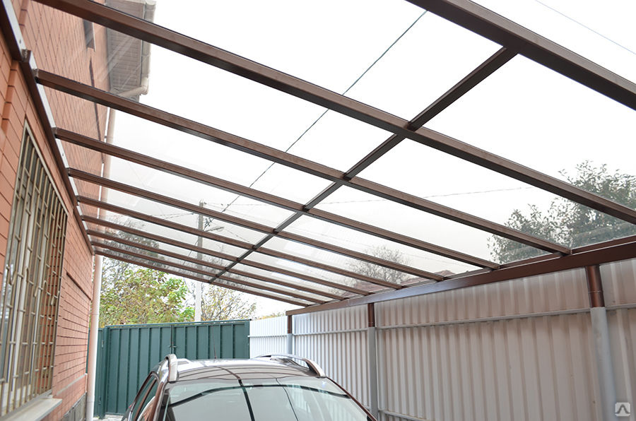 Но на это в большей мере влияет не столько качество поликарбоната, сколько надёжность каркаса. Следовательно, можно использовать даже самые тонкие листы. Это позволит и значительно удешевить навес.