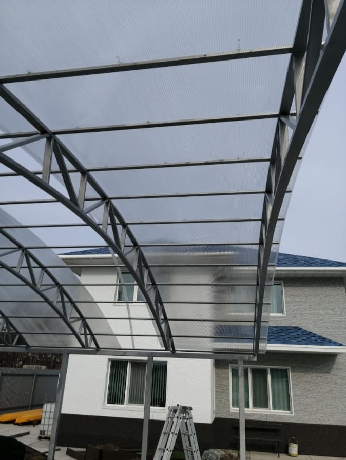 Как видите, строительство навесов из поликарбоната очень распространенно, потому что практично – этот материал почти заменил стекло, дерево и металл.