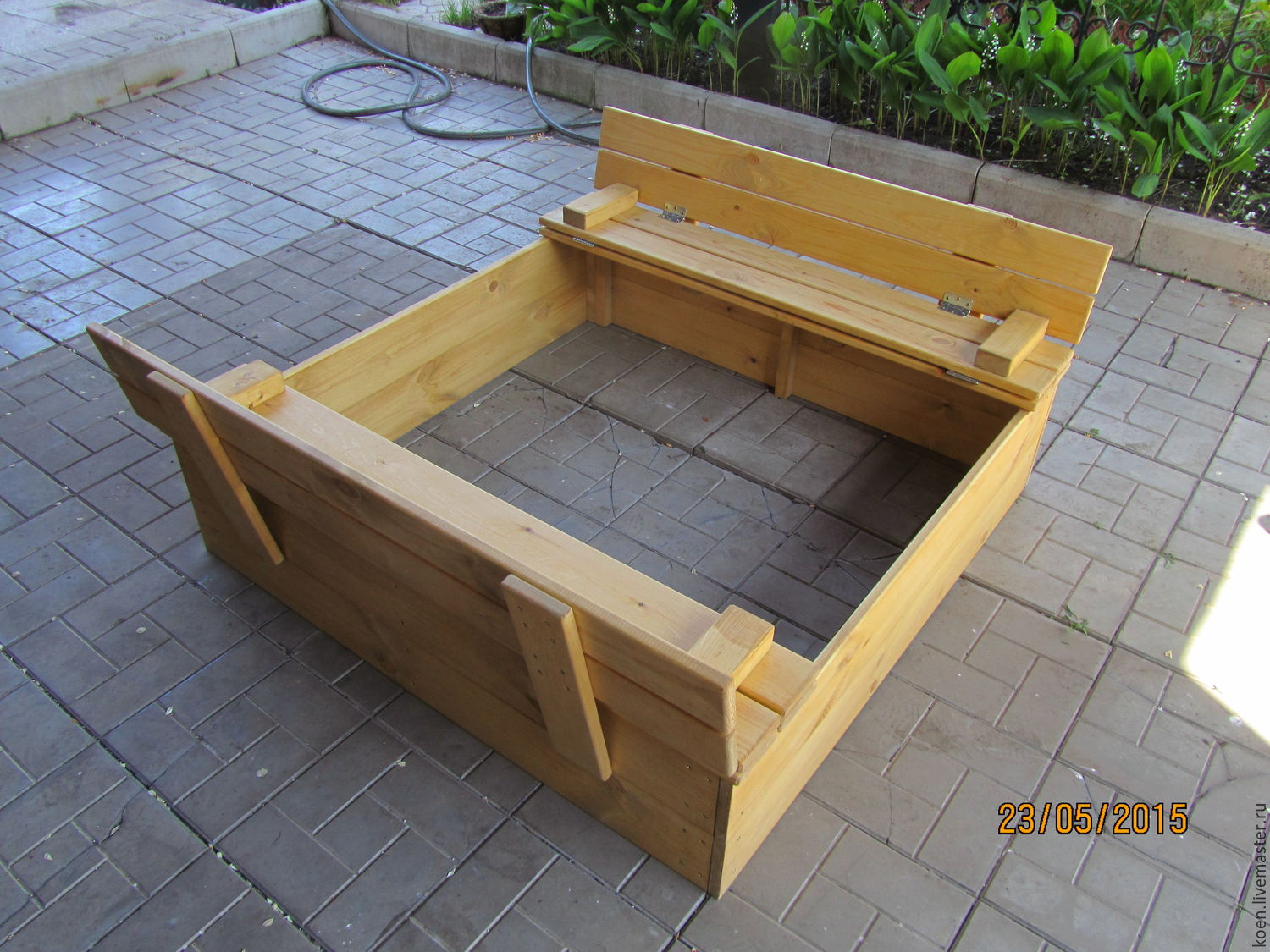 Один из самых оптимальных вариантов – это песочница с крышкой-скамейкой.