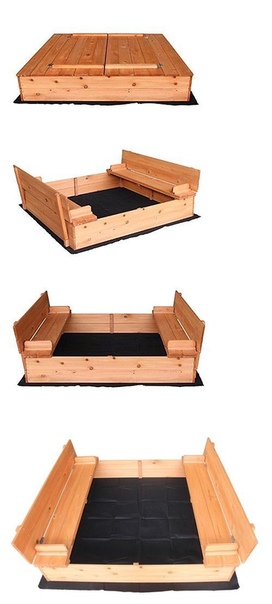 - если детям достаточно места в песочнице, то они могут использовать одну половину крышки как игровую подставку;