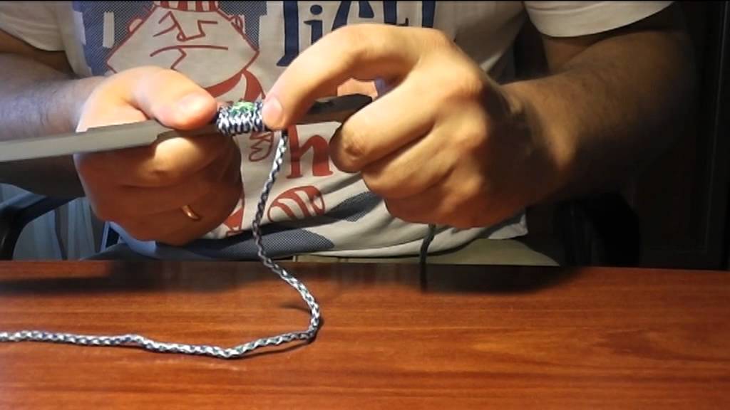 Если приобретён качественный шнур, то всё, что необходимо сделать – это отрезать кусок верёвки в зависимости о длины рукояти. Также необходимо подготовить рабочее место – очистить его от лишних предметов, поставить перед собой компьютер со схемой. Лезвие ножа нужно замотать скотчем или изолентой, чтобы не повредится.