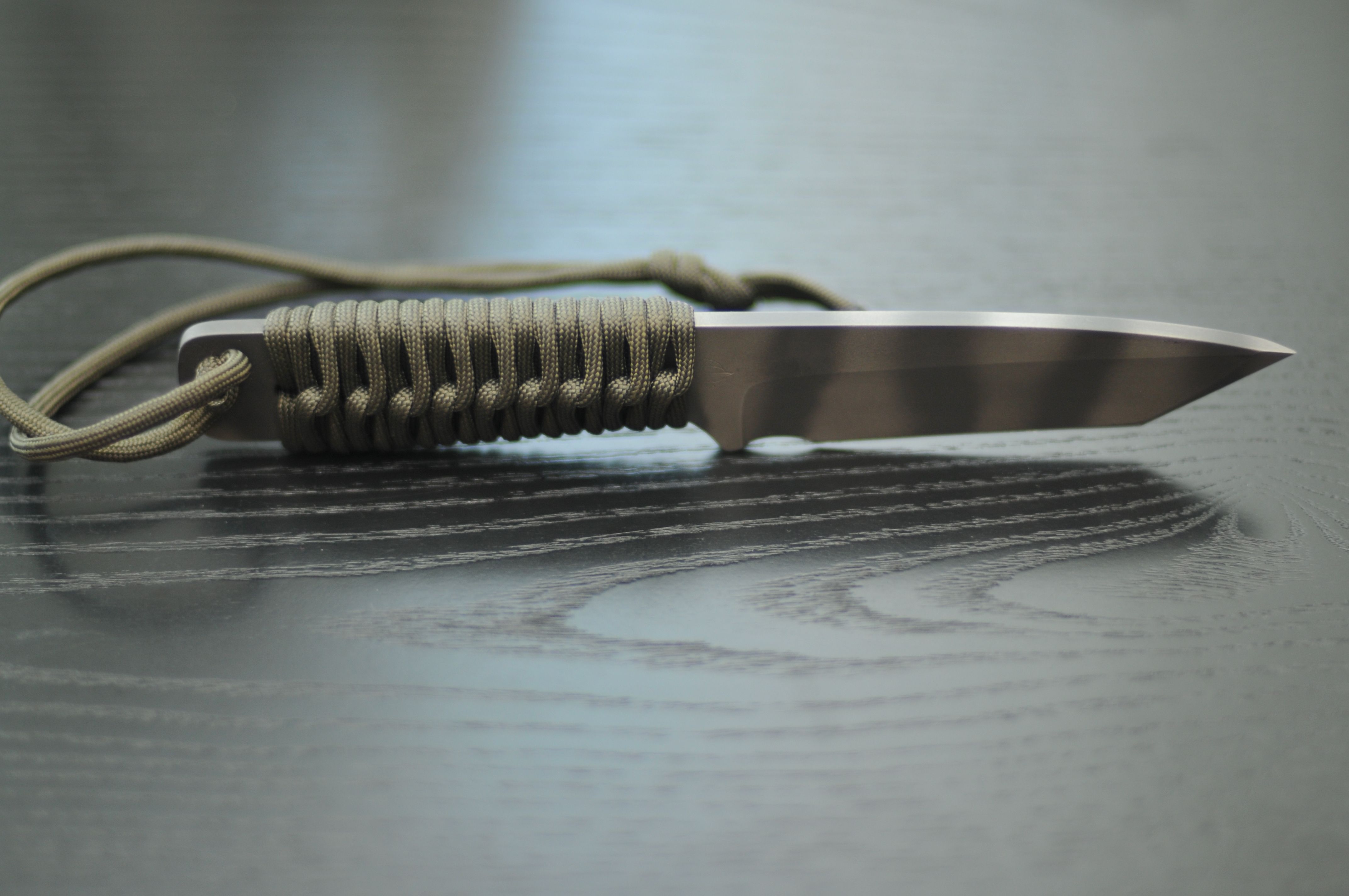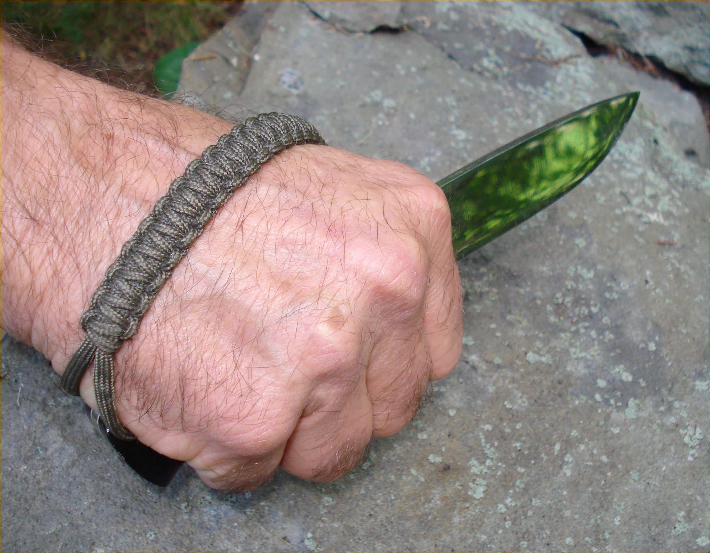 На нем теперь более длинная ручка, а дерево было некрасивым, поэтому я обернул его паракордом:
