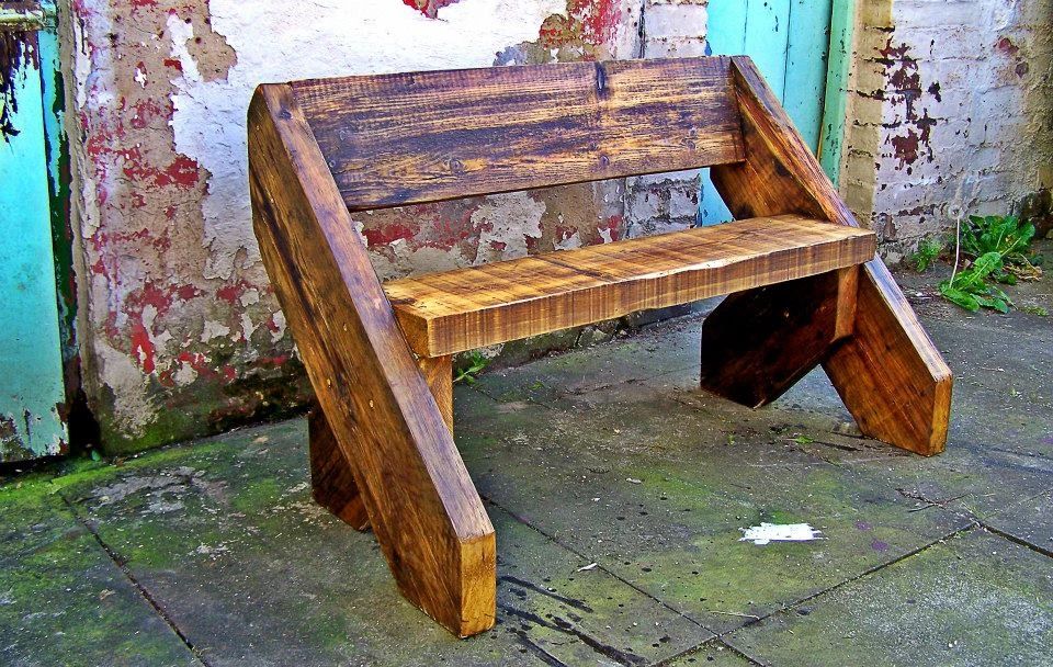 Спинку, ножки, подлокотники возможно создать из толстых и не очень толстых веток, сиденье обустроить из ошкуренной и обработанной (очищенной от коры, отшлифованной) необрезной доски. Ещё один вариант красивой скамейки из древесины, который можно установить в саду либо на дачном участке — расположенные в разном направлении доски и ветки. Такая деревянная скамья не требует особого мастерства. И чем небрежнее работа, тем привлекательнее внешне результат.