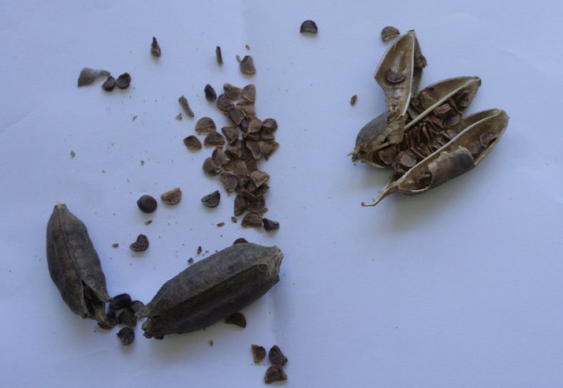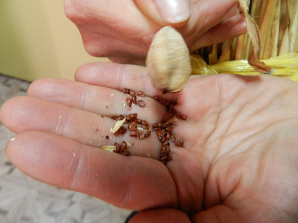 Семенной материал вызревает достаточно длительный период, однако трёхгранные коробочки могут раскрыться очень быстро, что способно спровоцировать высыпание зёрен. Чтобы сохранить семена для посадки, каждую коробочку обвязывают куском марли и ожидают их полного вызревания.