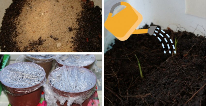 - Материал высаживают в горшки, наполненные субстратом из одинаковых частей садовой почвы и песка.