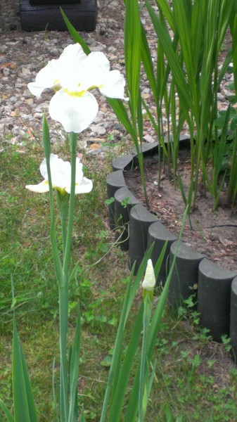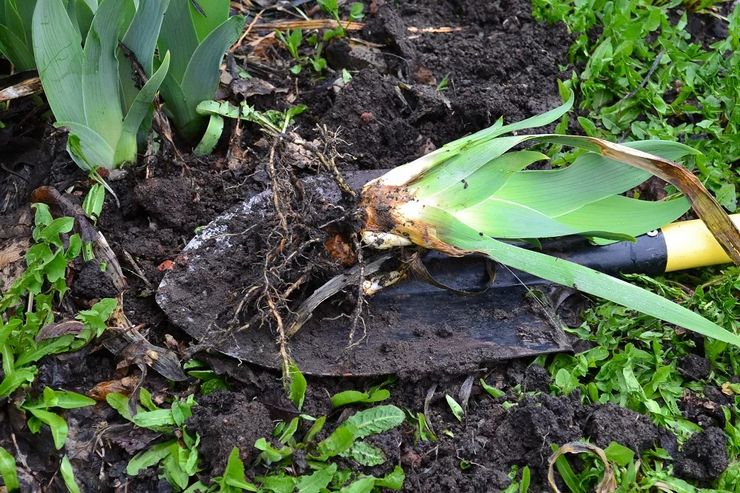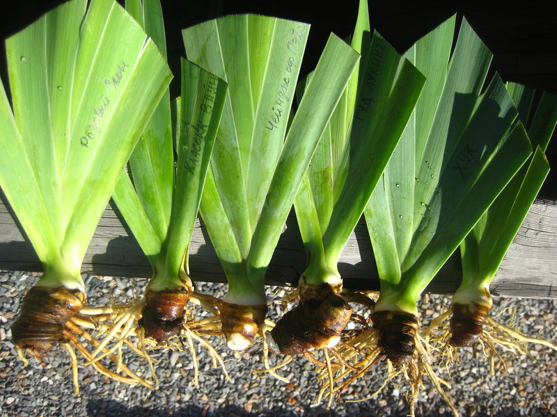 Поливают ирисы умеренно, они сухолюбивые растения. Рекомендуется осенью даже прикрыть их полиэтиленом от дождей. Но я вспоминаю очень дождливое лето. Чтобы ирисы не стояли в воде, мы рядом с грядкой вырыли ямы, куда стекала вода, вычерпывали её ведрами и выносили в канаву. И ничего, обошлось.