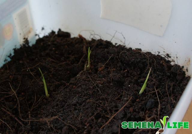 - Питательный слой слегка засыпают грунтом и высаживают семена на глубину до 2 см с интервалом в 10 см.