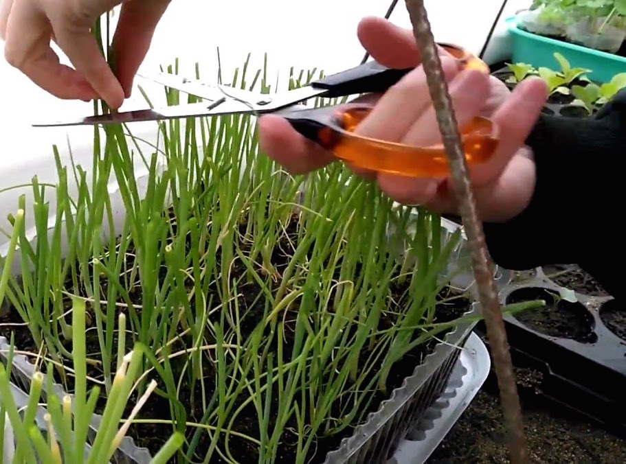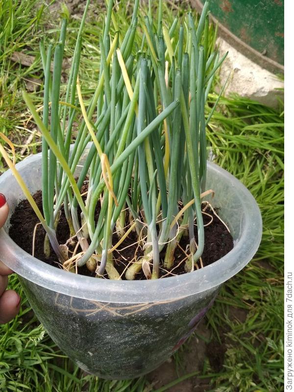 В апреле начинаем закалку рассады — выносим ее на балкон, оставляя на свежем воздухе на все более продолжительное время. Если растения переросли, у них можно подрезать перо, оставив около 10 см. Сенцы высаживаем в грунт в то же время, что и лук–севок. У рассады к этому моменту уже должно быть 3 — 4 настоящих листа и стебель толщиной 0,6 — 0,7 см.