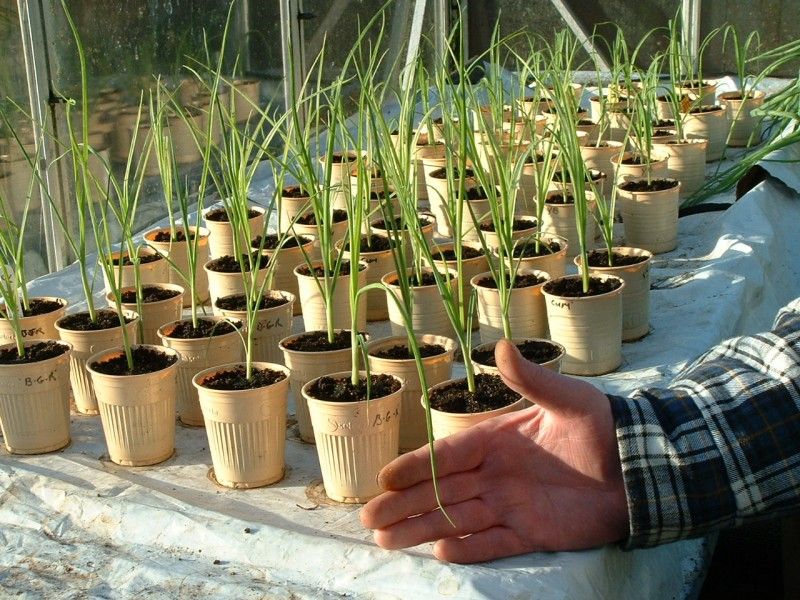 Сенцы высаживаем в грунт в то же время, что и лук–севок. У рассады к этому моменту уже должно быть 3 — 4 настоящих листа и стебель толщиной 0,6 — 0,7 см.