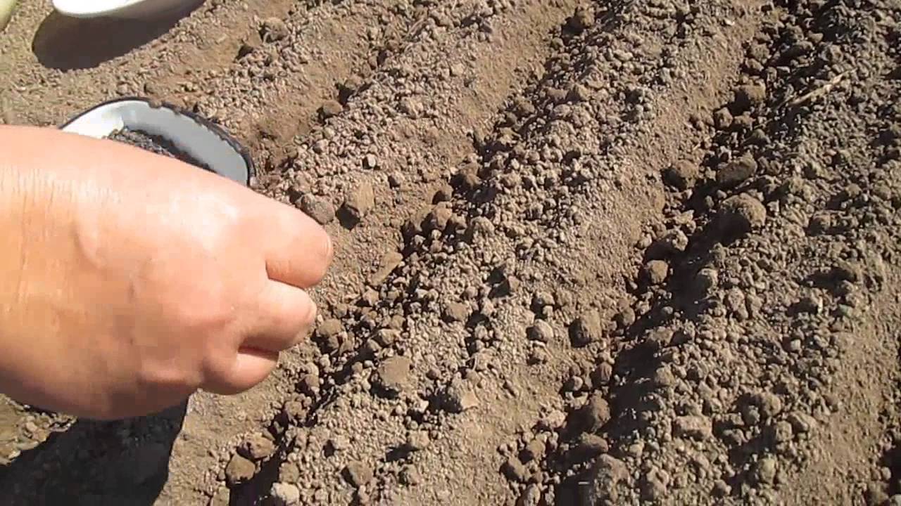 Посев семян тонким слоем в ряды на расстоянии 30 см друг от друга