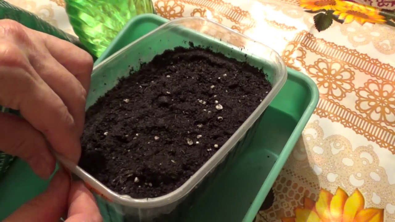 После посева хорошо полейте почву из пульверизатора. Идеально использовать талую или дождевую воду. Закройте контейнер пищевой пленкой, после чего поставьте в теплое место, не обязательно освещенное.