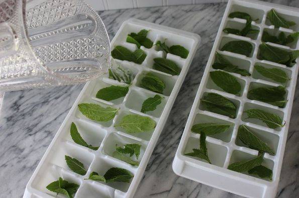 Если вы хотите хранить кинзу, петрушку, базилик или укроп, замените воду крошечной порцией куриного бульона в каждом отсеке для кубиков льда. Когда дело доходит до размораживания кубиков, кубик льда с мятой очень хорошо подходит для чашки горячего чая. Они также отлично подходят для приготовления смузи, коктейлей или соков. Вы можете даже заморозить нарезанные листья мяты вместе с апельсиновым соком, если планируете использовать траву в домашнем соке.