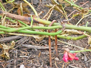 - После первых осенних сильных морозов прикрепите трость к опоре и обрежьте длинные концы.