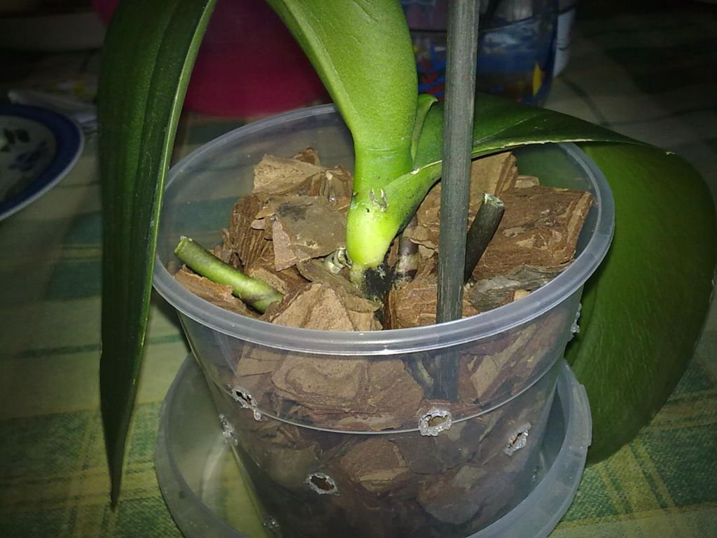 После чего горшок опускают в герметичную емкость с прозрачной крышкой. Если же крышки нет, можно воспользоваться домашней пищевой пленкой, которая также способна герметично закрыть емкость с горшком. Всю конструкцию стоит установить на светлом и теплом месте, но без прямых солнечных лучей способных вызвать ожог на вновь появившихся молодых листьях орхидеи.