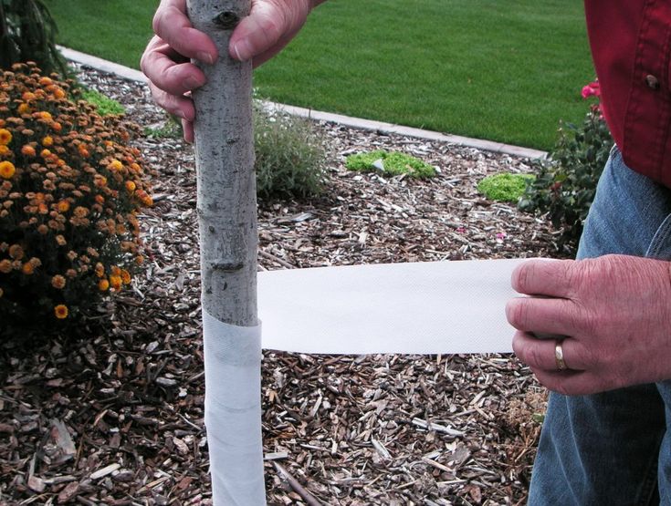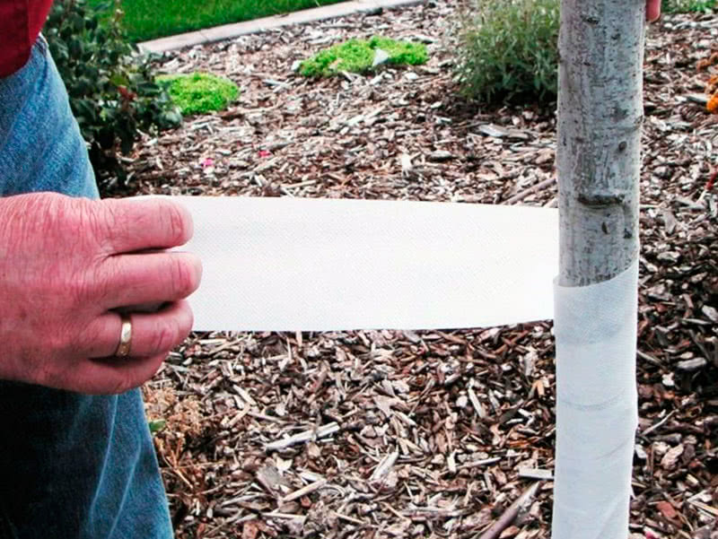 Можно использовать пленку или рубероид, но они вызывают подопрев. Они воздухонепроницаемые, если по весне своевременно не снять такой материал, жди парникового эффекта, ствол угорит, на дереве появится грибок.