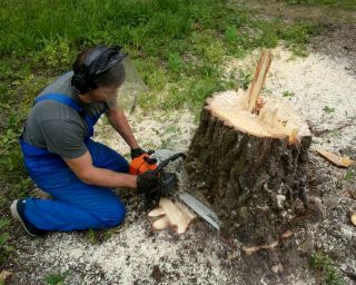 Как правильно убрать пень (цена при этом зависит от выбранного вами способа удаления). Существует несколько общих правил, при проведении этого процесса, но начать нужно с подбора инструмента и средств защиты: