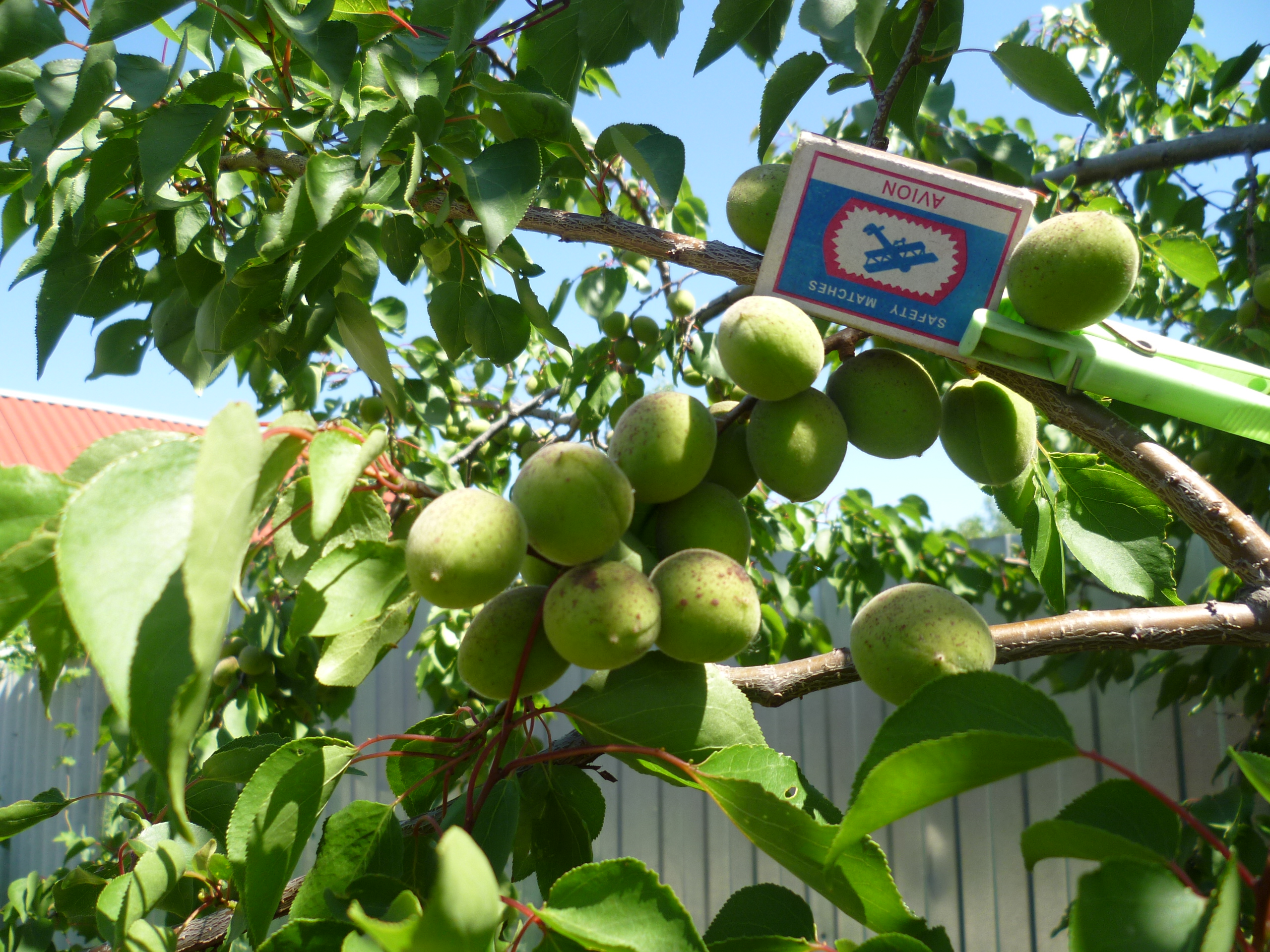Разбавление плодов : Плоды тонкие, когда достигают одного дюйма в диаметре. Оставьте два дюйма между фруктами. Прореживание особенно важно, если дерево поражено бурой гнилью.