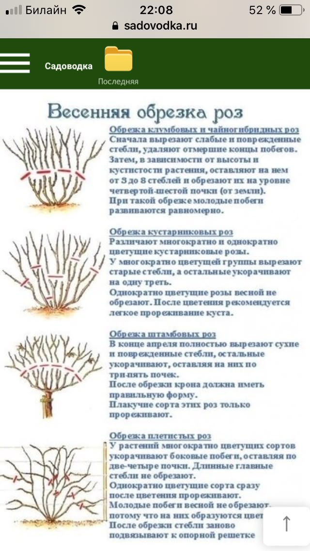 Обрезать такие розы осенью просто: можно укоротить все боковые побеги на 0,1 – 0,15 метра. - Плетистые розы, цветущие все лето сорта, зимостойкие с вертикальными не гнущимися стеблями. Обрезка осуществляется путем ликвидации некоторых мощный побегов (для симметричности), от остальных стеблей отрезают 0,1 – 0,15 метра длины. Отцветшие побеги удаляются в полной мере.