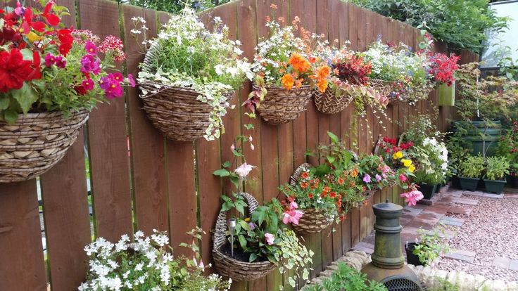 Вы можете высадить в «горшочки» любые низкорослые или вьющиеся растения. Однако они будут нуждаться в частом поливе, поскольку небольшое количество грунта быстро высохнет даже в нежаркую погоду.
