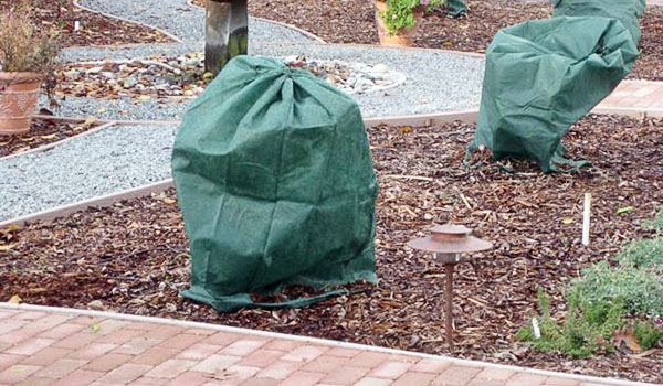 Если побеги хрупкие и легко ломаются, то их не стоит пригибать к земле, над ними сооружают укрытие из дуг, поверх которых натягивают укрывные материалы. Почву около куста покрывают мульчей.