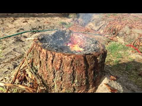 Для него пень обкладывают дровами и валежником, затем поджигают. В результате сгорают лишь надземная часть и немного подземной части.