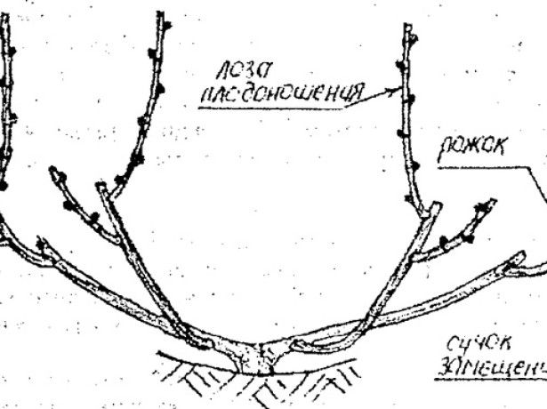 Для этого плодовая лоза срезается до уровня сучка замещения, после чего на её месте вырастают 2 новые лозы, которые будут приносить более обильно, а грозди на них окажутся крупнее. Плодовое кольцо на сучке замещения после обрезки развивается в течение всего лета, и к следующему сезону куст будет уже полностью сформирован.