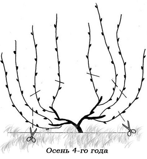 На 5 год удаляются все побеги, которые не относятся к основным веткам. Это позволяет получить полноценный куст, дающий обильный урожай и в то же время не загущенный.