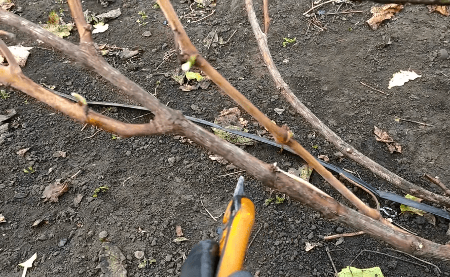 Это необходимо для того что бы в дальнейшем, перед зимой, Вам было легче укрыть ваш виноград от сильных морозов. Если же Вы планируете проводить весеннюю обрезку, не забывайте, что в этот период лоза винограда может пустить «плачь», который приведет к закисанию почек, а впоследствии и к их не распусканию. Чаще всего это повреждает глазки на сучках замещения.