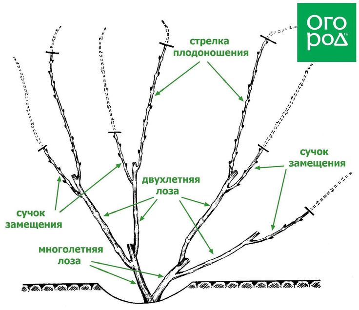 На фото — схема обрезки винограда, sadbio.ru