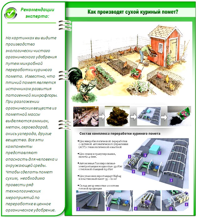 В частности нужно как-то избавляться от помета, и желательно с пользой или выгодой для хозяйств.