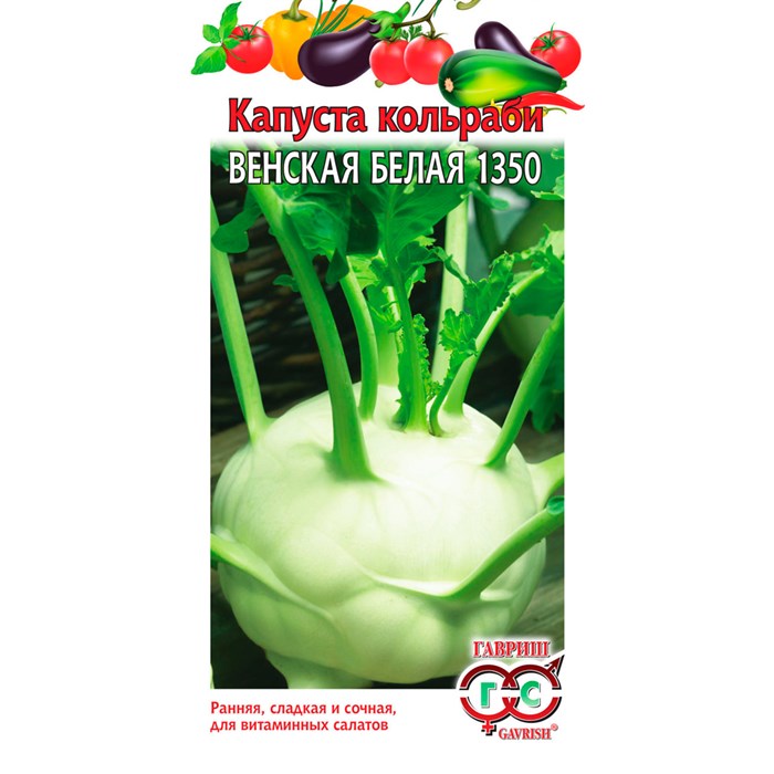 Урожайность гибрида кольраби Соната F1 – 2,5 кг/м², а за сезон (в зависимости от климата) можно снять 2-3 урожаяВенская белая 1350