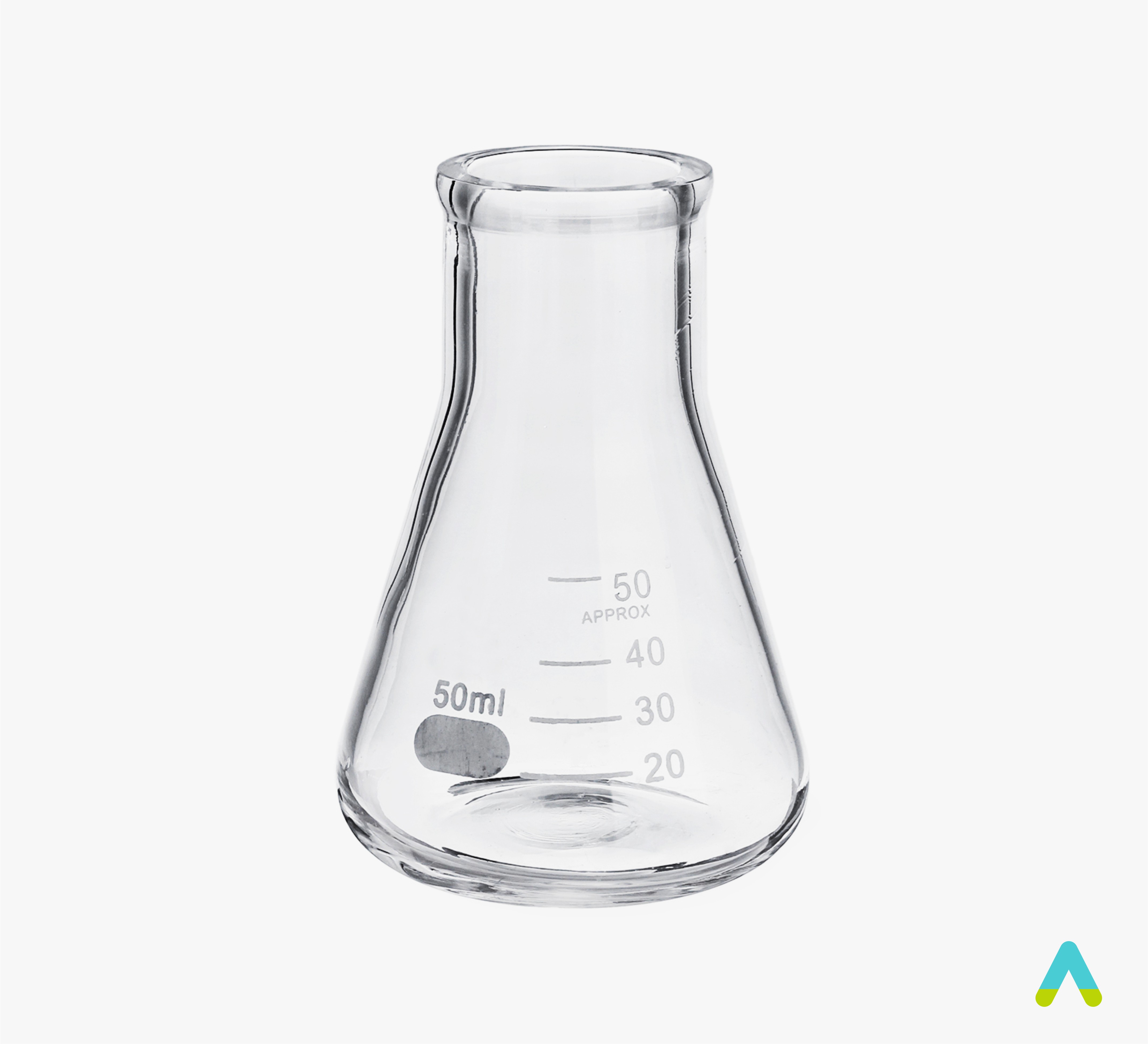 Колба представленного типа применяется при проведении титрования, выращивания чистых культур или нагревания. Если колба имеет деления на корпусе, их не нагревают. Такая посуда позволяет измерять количество содержимого вещества.
