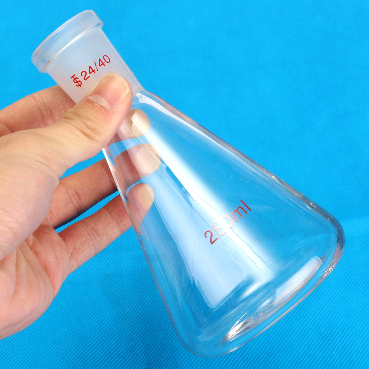 Горловину при необходимости можно закрывать пробкой. Коническая форма способствует качественному перемешиванию содержимого. Узкое горлышко предотвращает разливание вещества. Процесс испарения в такой таре происходит медленнее.