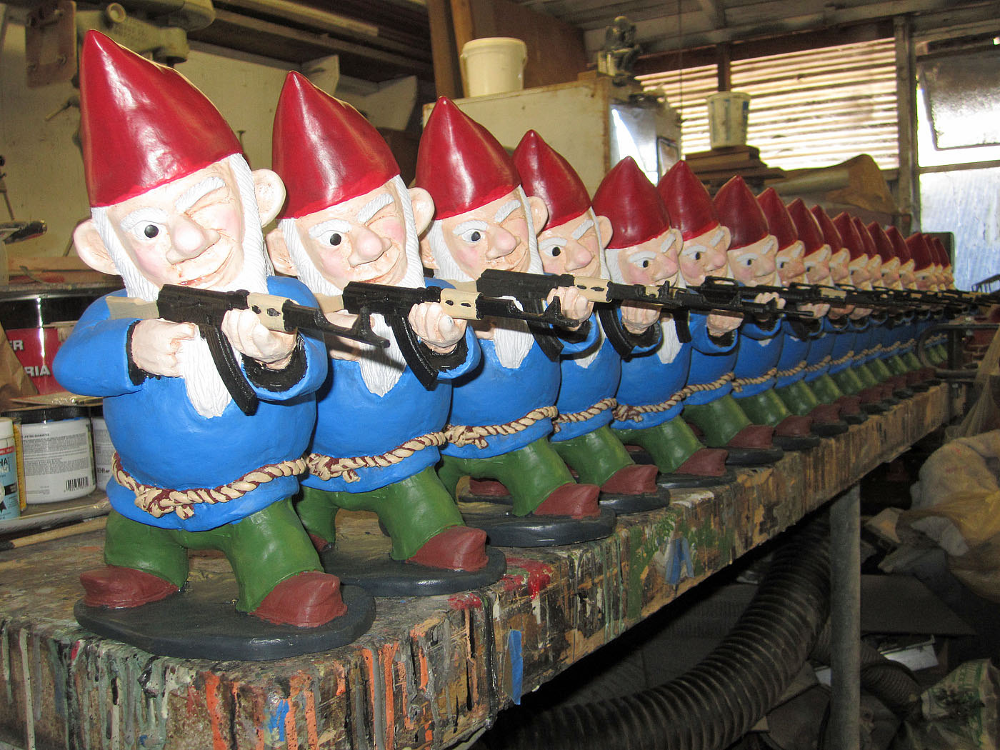 Так же как вариант для людей с особым вкусом возможна изготовка гномов из металла они могут, сварены с различных запчастей или вылиты в виде одного монолитного куска металла.