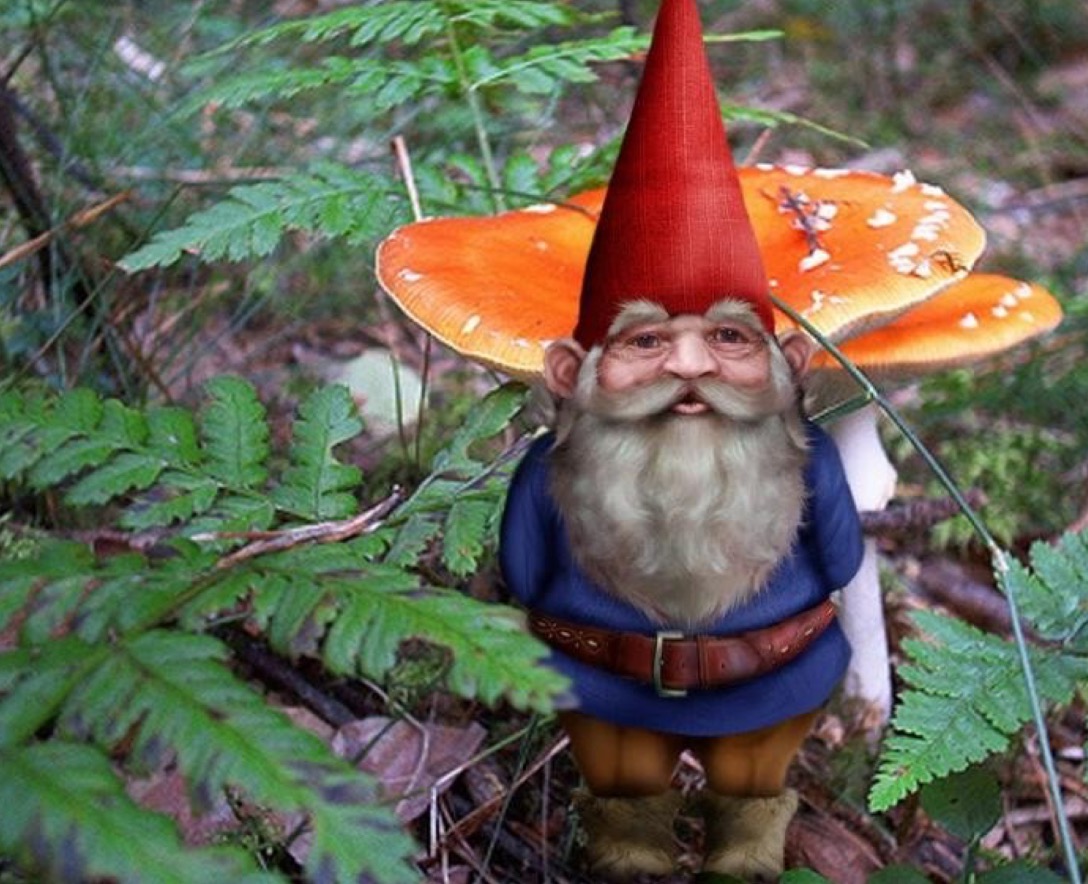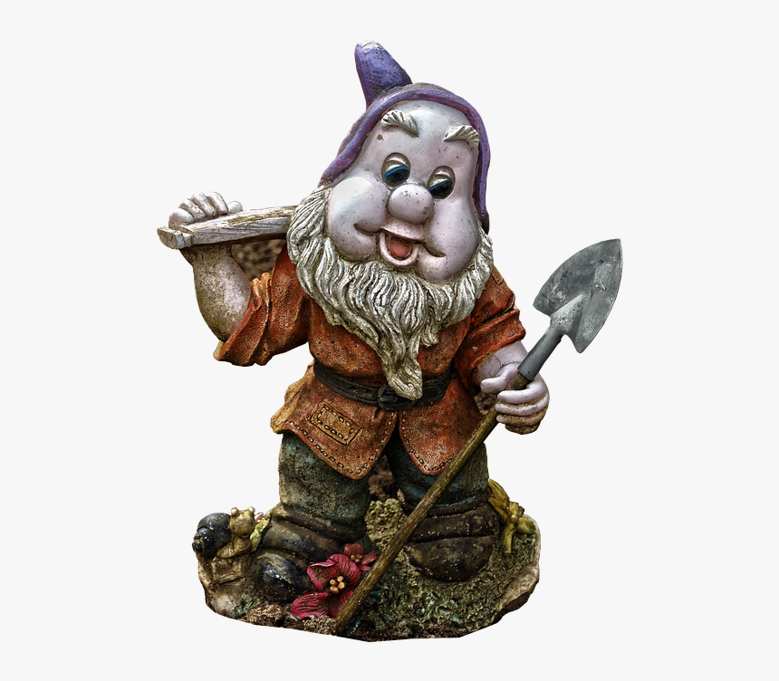 Теперь можно понять, почему гномики на картинках и в виде статуэток изображаются с садовым инструментом (лопатки, кирки, грабельки), лукошками, лейками.
