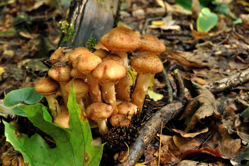 - Обнаружив небольшое скопление опят, не стоит покидать это место сразу: возможно поблизости есть еще колонии.