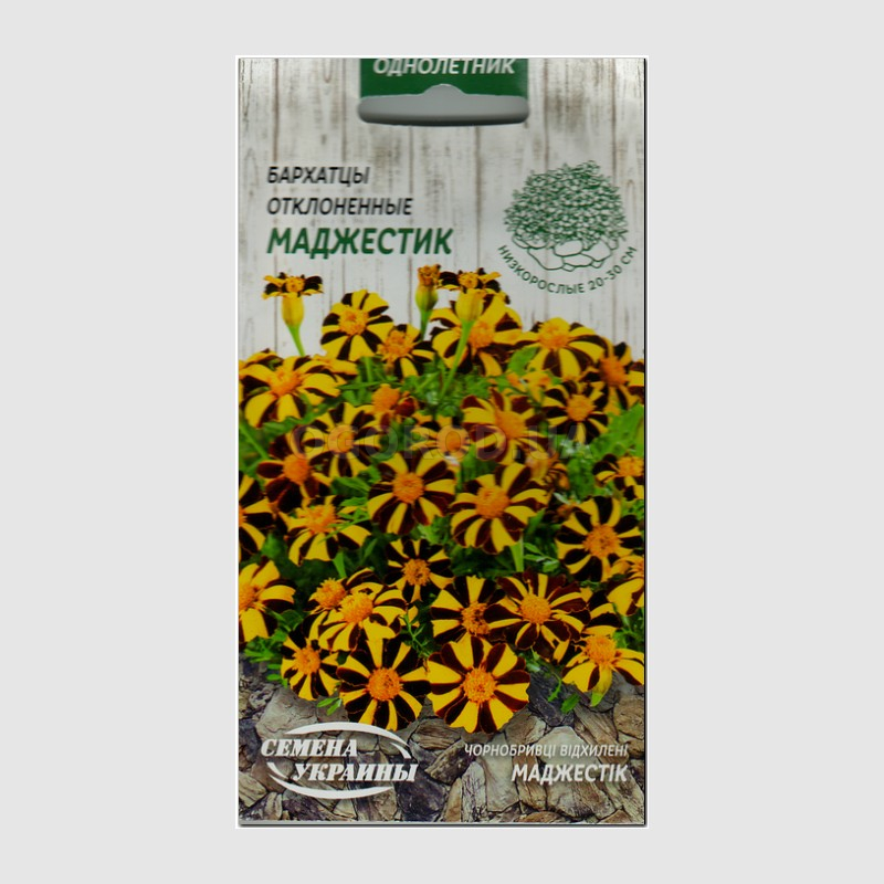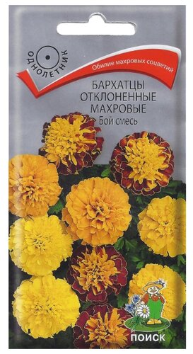 Эти бархатцы еще называют раскидистыми. Спросом у цветоводов пользуются сорта серии Бонанза высотой до 30 см (Бонанза Болеро, Бонанза Оранж, Бонанза Пламя и т.д.), обладающие высокой декоративностью махровых соцветий ярких цветов 5-6 см в диаметре и большой продолжительностью цветения; очень красивы бархатцы Кармен, украшающие цветник махровыми соцветиями с гофрированными лепестками красно-коричневого по краям и оранжево-желтого в середине оттенков.