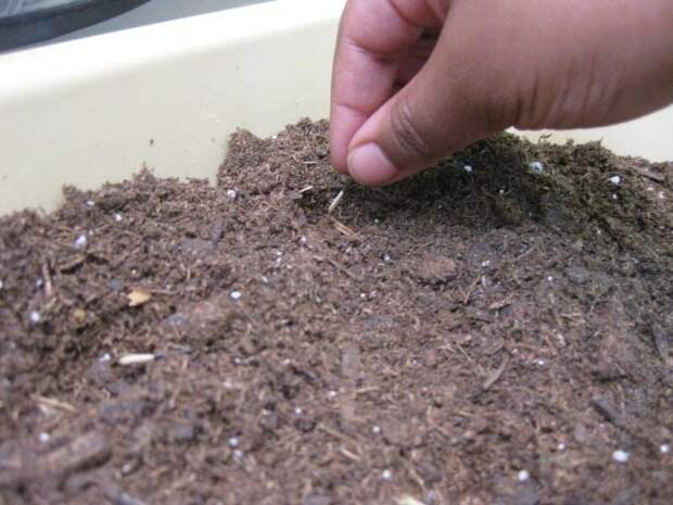 На расстоянии 1,5-2 см друг от друга сделайте бороздки, разложите в них семена и присыпьте небольшим слоем почвы. Поливать нужно очень осторожно, чтобы вода не вымыла семена из грунта.