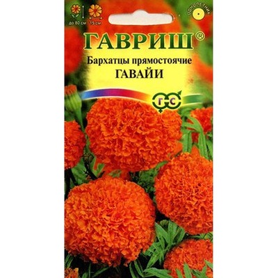Или бархатцы африканские, являются гигантами рода, их высота от 30 до 100 см. Соцветия, как правило, однотонные и махровые, достигают 15 см в диаметре. Среди самых популярных сортов бархатцы Ванилла 70 см роста с кремово-белыми махровыми соцветиями 12 см в диаметре; бархатцы Килиманджаро ростом 60-70 см с густомахровыми шаровидными соцветиями; бархатцы Антигуа, невысокие, до 25 см роста, но прямостоячие, с крупными цветками – до 15 см в диаметре, золотистой, лимонно-желтой, оранжевой и ярко-желтой окраски.