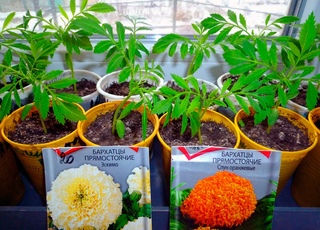 - Тагетес «Золотой самоцвет» лучше растет в тепличных условиях. Засевают семена в середине марта или начале апреля.