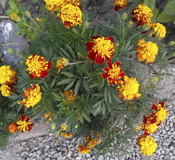 Или бархатцы мексиканские, очень отличаются от всех других видов. Во-первых, у них очень красивые ажурно-кружевные листья, они как будто парят в воздухе, источая нежнейший аромат. Во-вторых, их мелкие соцветия так многочисленны, что напоминают фейерверк из красно-оранжевых, золотисто-желтых и золотисто-оранжевых огней.