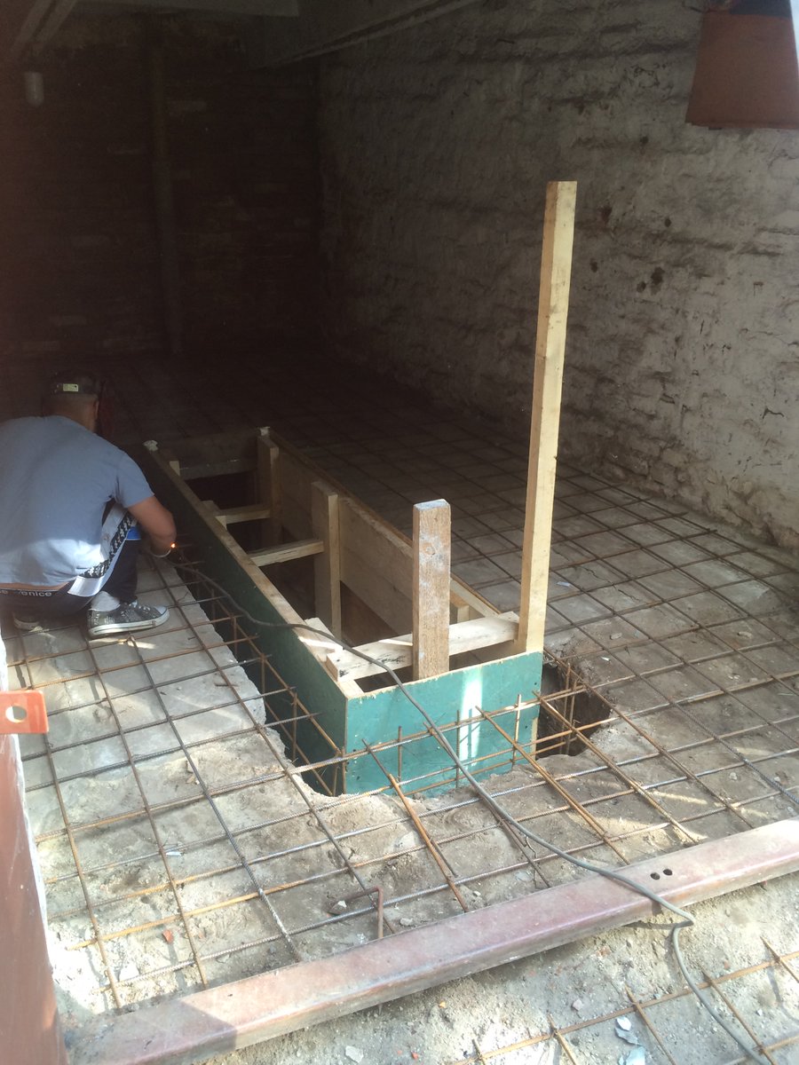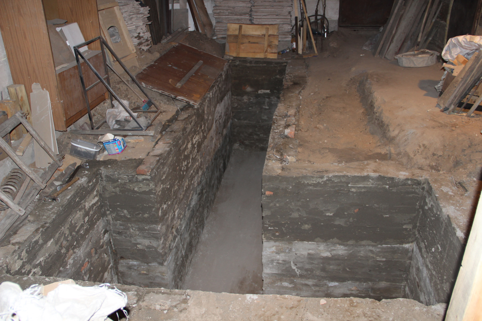 - Когда полость полностью обретёт свою форму, настанет пора заняться стенами и полом. Наилучшая конструкция в данном случае — это кирпичная кладка, хотя многие умельцы просто заказывают на заводе стальной короб по собственному чертежу.
