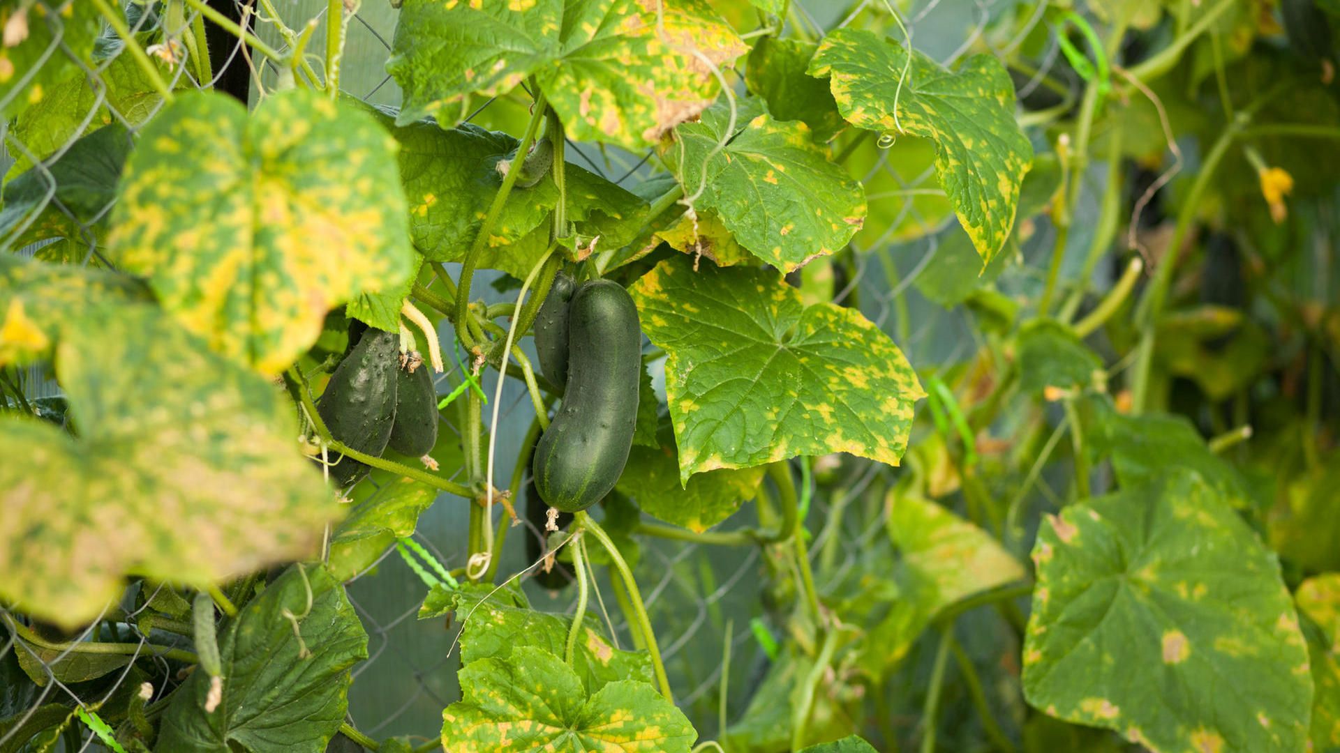 Признаки: при этой болезни листья огурцов покрываются желтыми пятнами, похожими на ожог от солнца, а снизу приобретают фиолетовый цвет.