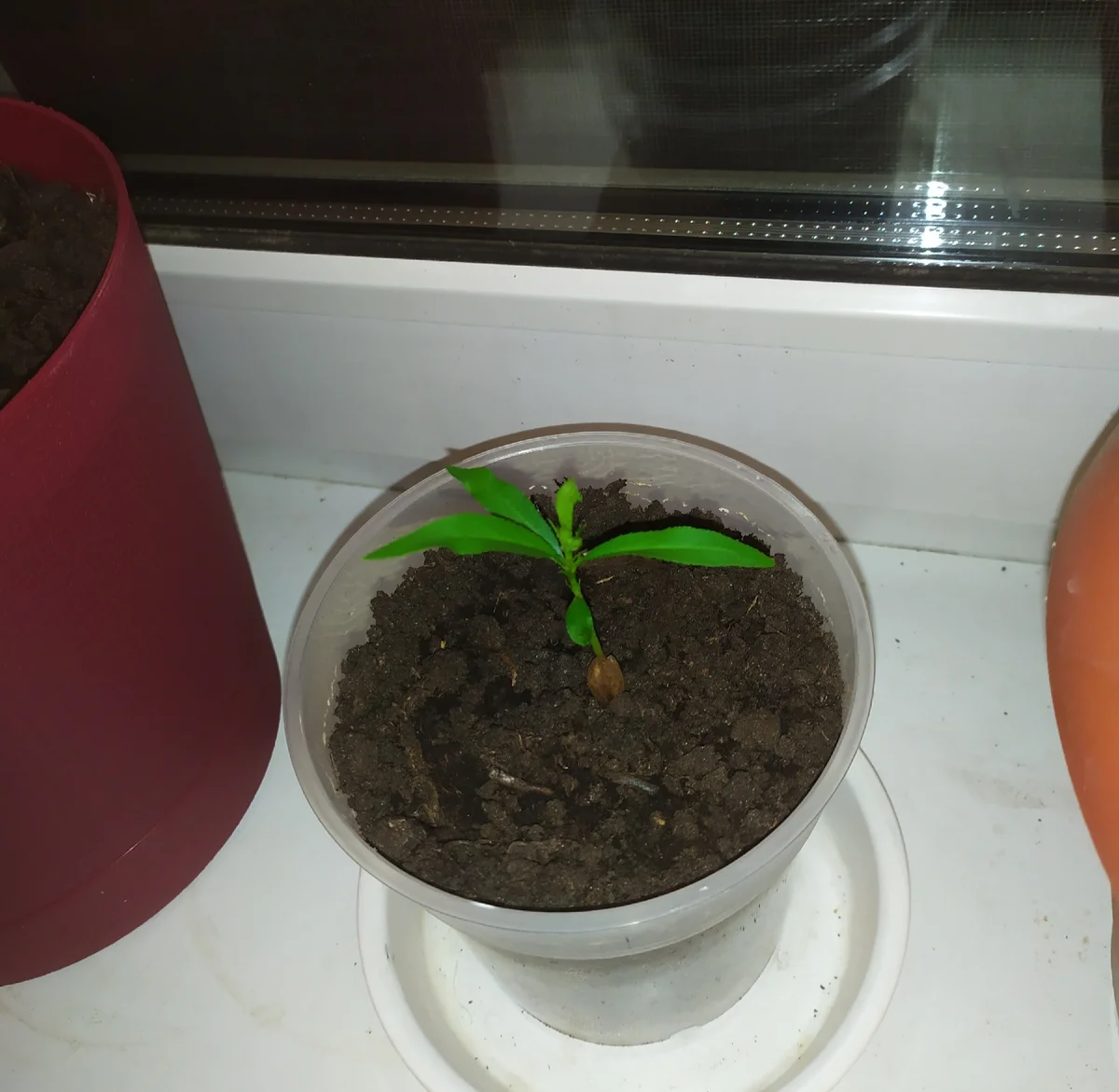 Нельзя допускать переувлажнения, так как семена могут сгнить. Нежелательно также подсушивание субстрата. - Первые ростки из набухших косточек появляются через 3-4 месяца, после чего сеянцы высаживают в отдельную емкость.